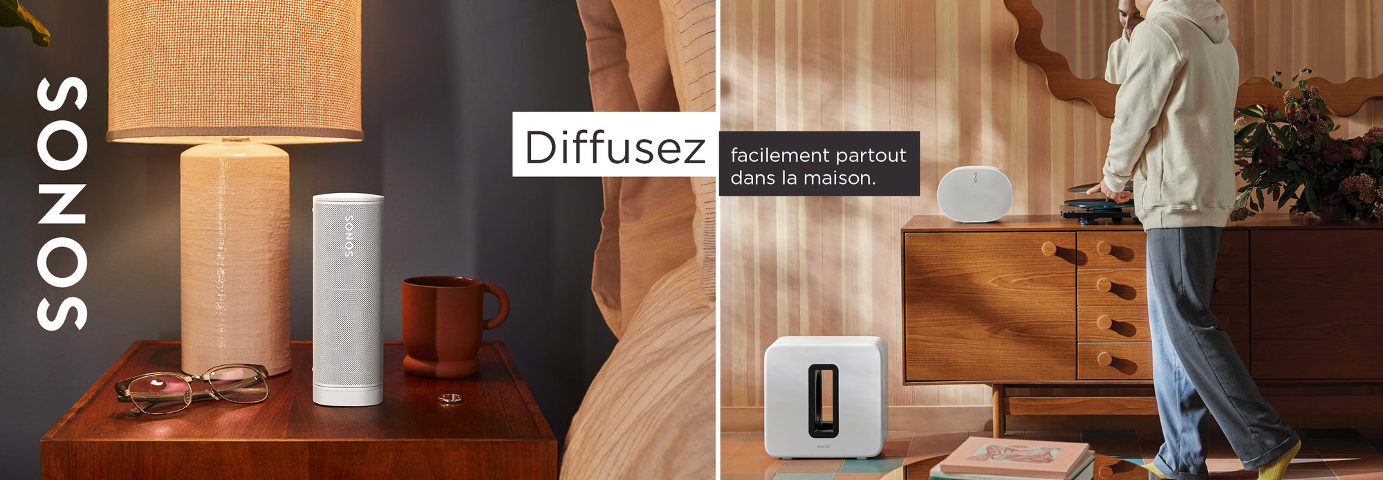 Caisson de graves Sonos sans fil | Wifi - Trueplay - 2 amplificateurs numériques de classe D - 2 membranes de 15 centimètres orientées vers l’intér...