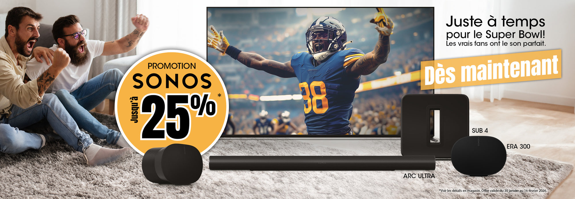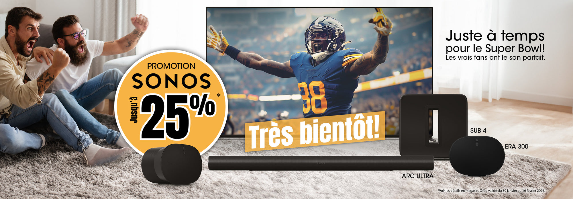 Barre de son Sonos 3.0 canaux Wifi | 4 Caissons de basses - 1 Haut-parleur d'aigus - Ensemble de microphones - 3 Radiateurs de basses passifs - 5 A...